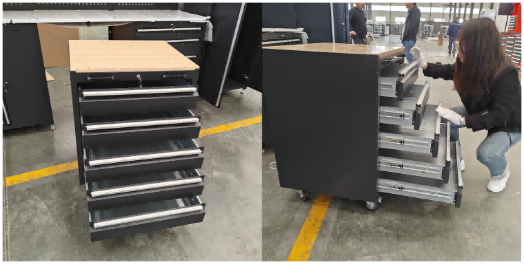 Welding at Assembly: Ang mga kritikal na kasukasuan ay propesyonal na hinang (MIG) para sa maximum na lakas at katigasan. Ang mga drawer slide ay maingat na nakahanay.