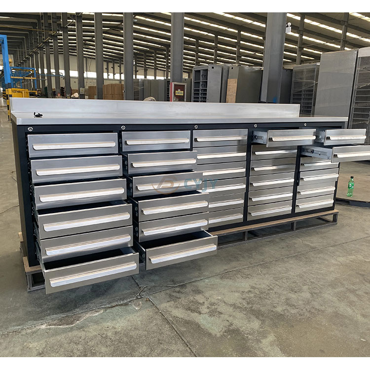 Pagod ka na bang magkaroon ng hindi maayos na garahe? Mayroon kaming perpektong solusyon para sa iyo! Bilang isang nangungunang tagagawa ng mga cabinet ng kasangkapan, gagawin ng Heavy duty Workbench with Drawers ng CYJY ang iyong garahe sa isang organisado at mahusay na espasyo. Naghahanap ka ba ng Heavy duty Workbench na may Drawers na makakapag-imbak ng lahat ng iyong tool? Huwag nang tumingin pa sa Heavy duty Workbench ng CYJY na may mga Drawers. Sa sapat na espasyo sa imbakan at kakayahang madaling ilipat ang iyong mga tool sa lugar ng trabaho, ang ganitong uri ng tool cabinet ay perpekto para sa anumang lugar ng trabaho o garahe.