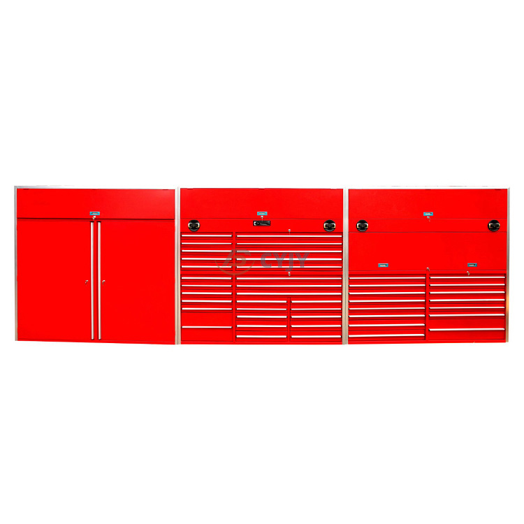 Ang Chengyuan Jiayu ay isang pabrikang Tsino na nagdadalubhasa sa paggawa ngmalaking metal tool cabinets. Ang pangkalahatang frame ngmalaking metal tool cabinetay gawa sa cold-rolled steel plate na materyal, na malakas at matatag. Ang drawer ay gawa sa galvanized steel material, na anti-corrosion at anti-rust. Ang hawakan ay gawa sa aluminyo na haluang metal, na lumalaban sa kaagnasan at lumalaban sa mataas na temperatura, at may mataas na pagganap. Mayroong 27 drawer sa cabinet at 15 drawer sa tabi ng cabinet, na maaaring gamitin sa pag-uuri at pag-imbak ng mga tool o bahagi. Maaaring i-customize ang mga liner sa loob ng bawat drawer upang maiwasan ang pag-slide at pagkasira ng mga tool o bahagi. Ang kulay, estilo at sukat ng buong cabinet ay maaaring ipasadya ayon sa iyong mga pangangailangan. Ang iyong konsultasyon at order ay malugod na tinatanggap.