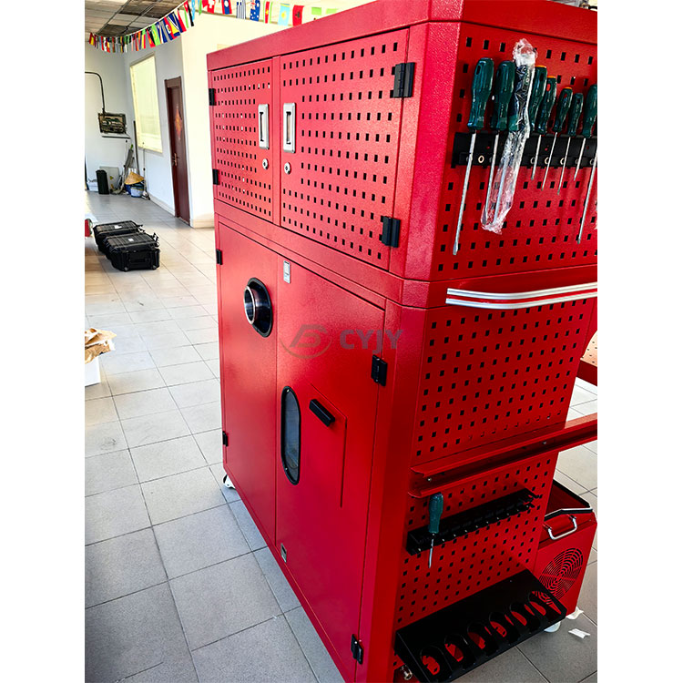Ang cabinet ng kasangkapan ng CYJY ay nilagyan ng lahat ng kailangan ng mga manggagawa sa pagpapanatili ng industriya upang magawa ang trabaho, kabilang ang iba't ibang mga tool at accessories. Mayroon din itong built-in na air pump at mga lighting fixture para sa karagdagang kaginhawahan.