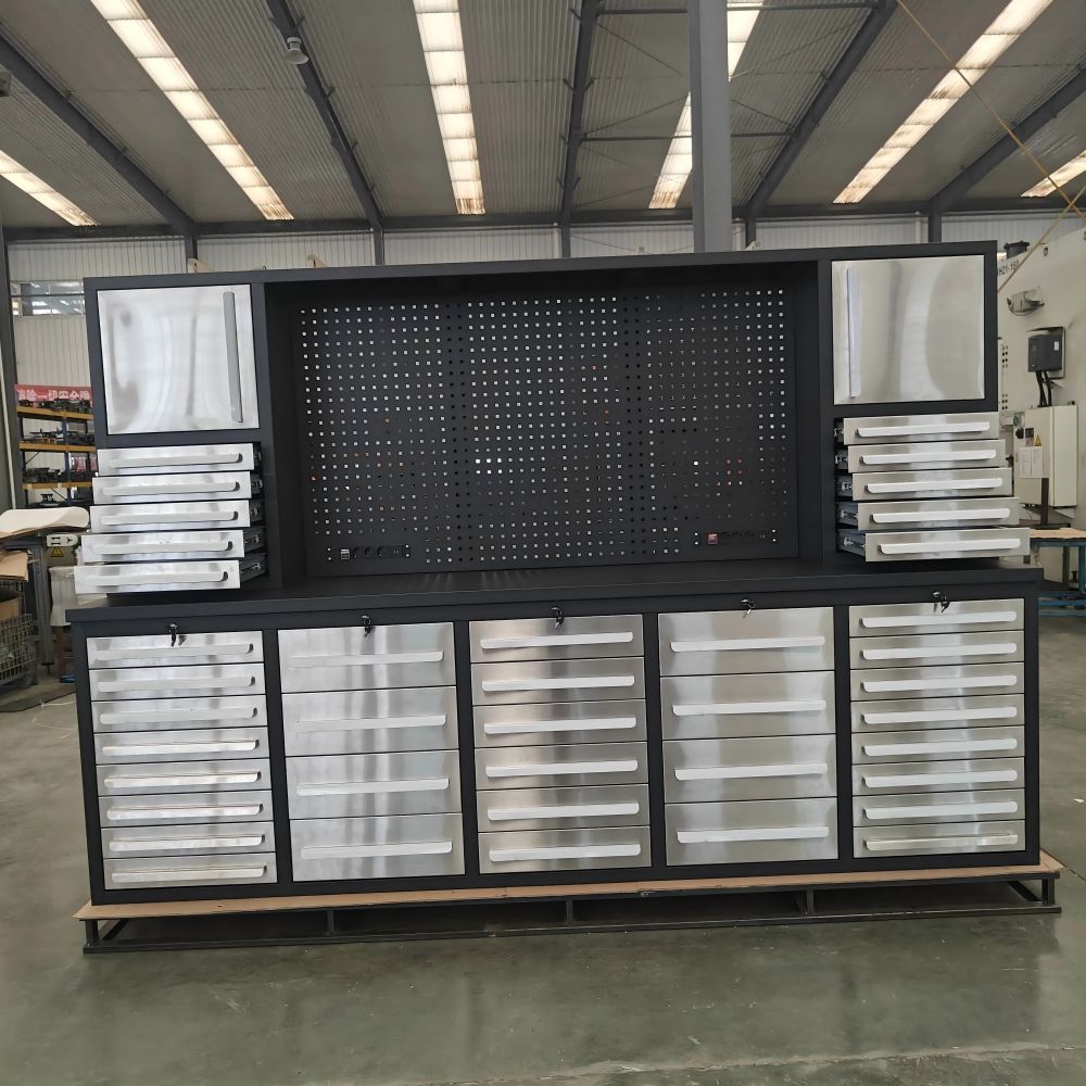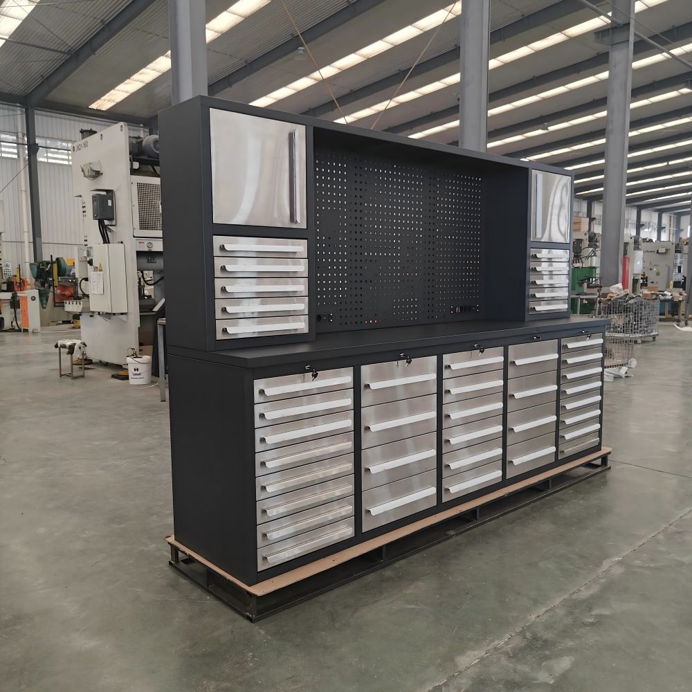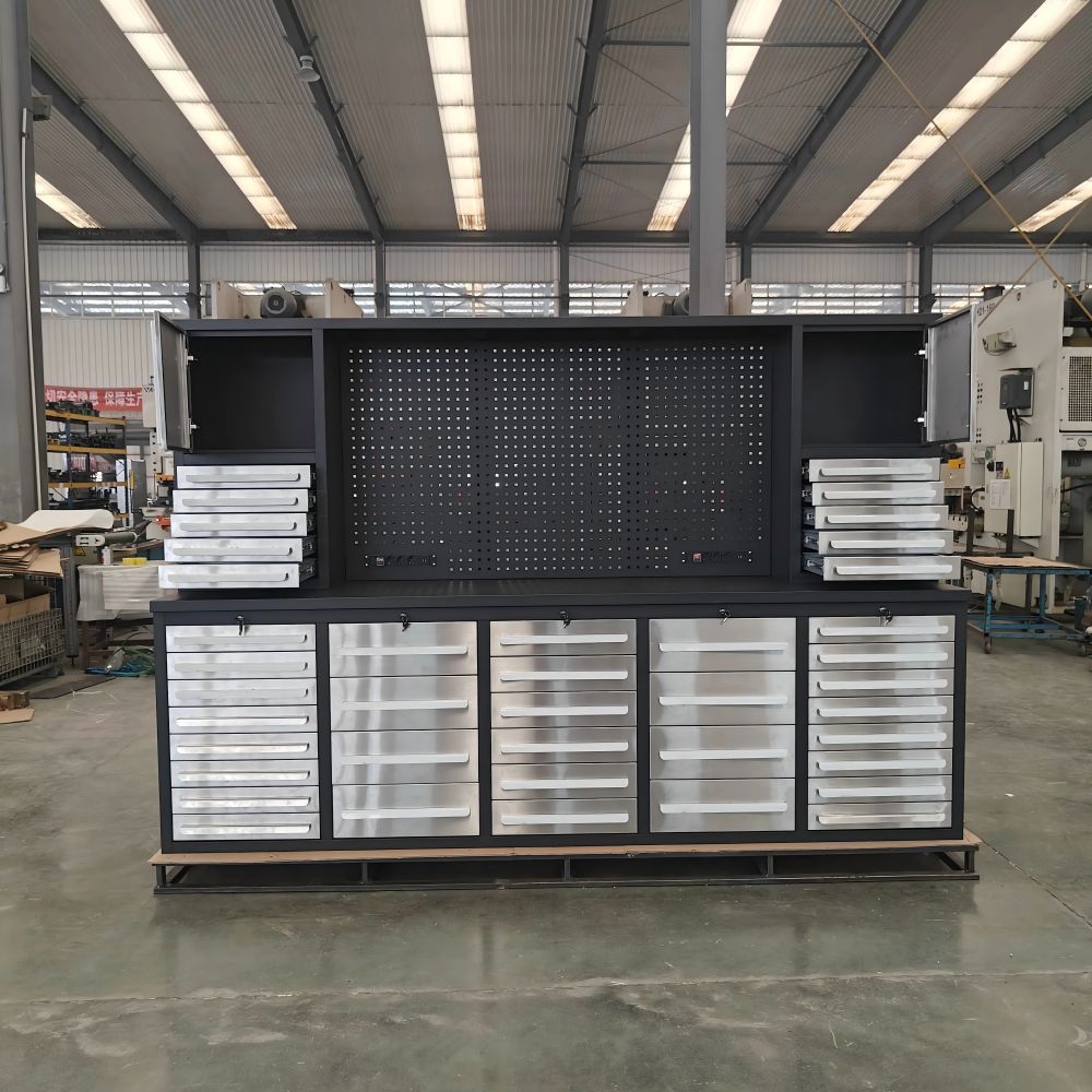 Ang multifunctional multi-drawer workbench ay isang komprehensibong workstation na nagsasama ng imbakan, operasyon, pamamahala ng tool at pag-optimize ng workspace. Ito ay dinisenyo para sa pang -industriya na pagmamanupaktura, mga workshop sa pagpapanatili, mga laboratoryo at mga mahilig sa DIY. Ang pangunahing bentahe ng multifunctional multi-drawer workbench ay namamalagi sa kumbinasyon ng isang modular drawer system at isang solidong ibabaw ng trabaho, na nagbibigay ng isang mahusay na solusyon sa daloy ng trabaho.Product Paglalarawan