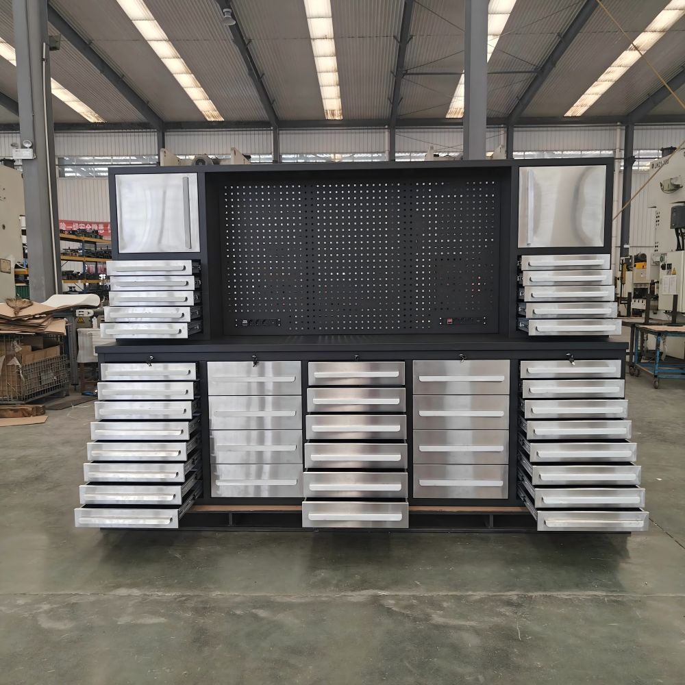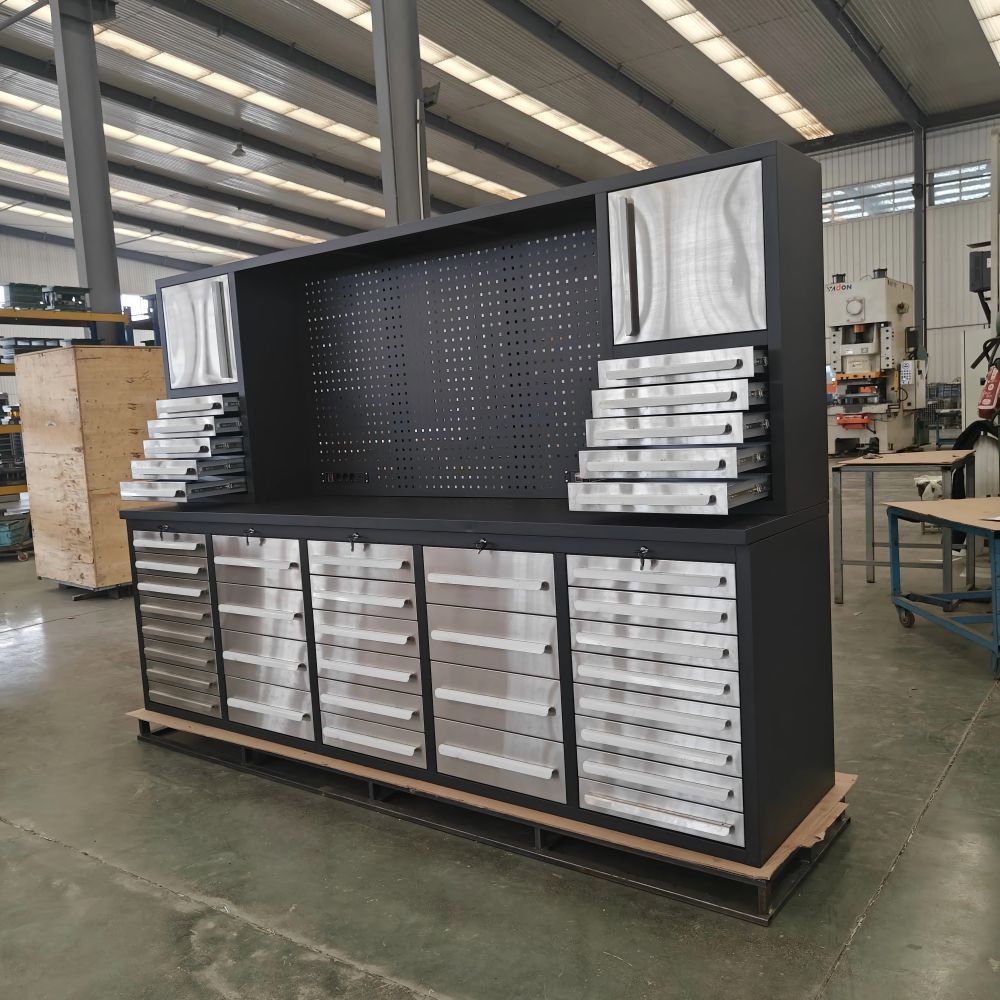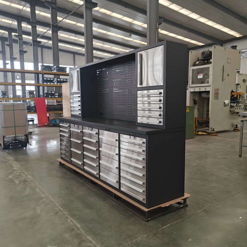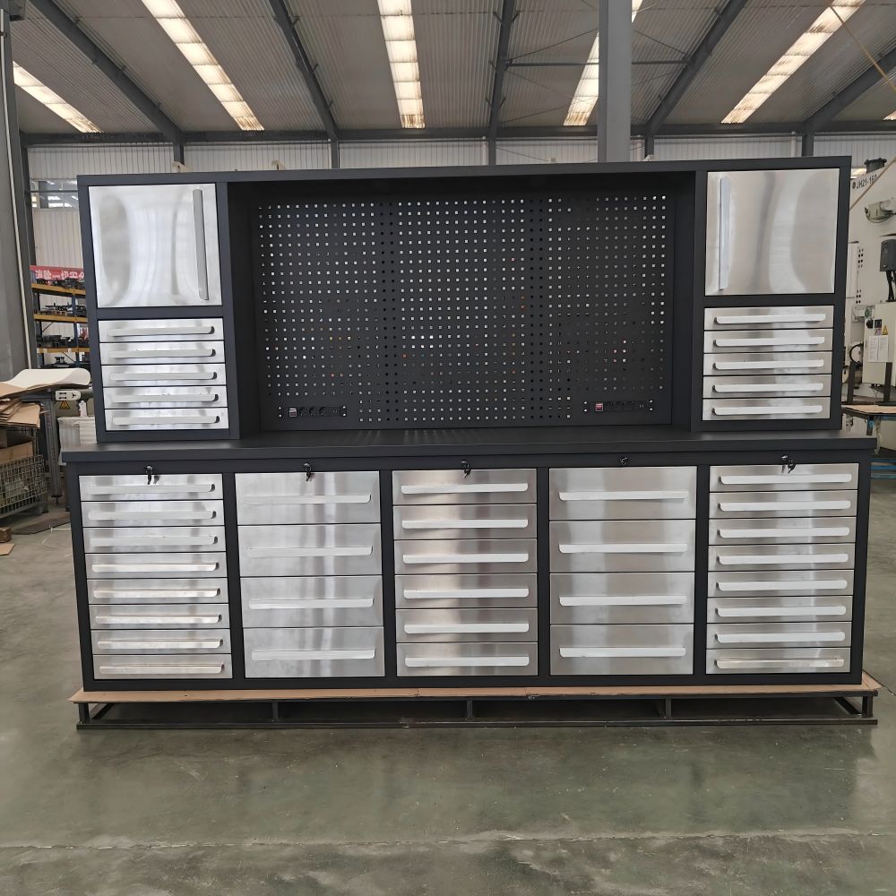 Ang multifunctional multi-drawer workbench ay isang komprehensibong workstation na nagsasama ng imbakan, operasyon, pamamahala ng tool at pag-optimize ng workspace. Ito ay dinisenyo para sa pang -industriya na pagmamanupaktura, mga workshop sa pagpapanatili, mga laboratoryo at mga mahilig sa DIY. Ang pangunahing bentahe ng multifunctional multi-drawer workbench ay namamalagi sa kumbinasyon ng isang modular drawer system at isang solidong ibabaw ng trabaho, na nagbibigay ng isang mahusay na solusyon sa daloy ng trabaho.Product Paglalarawan