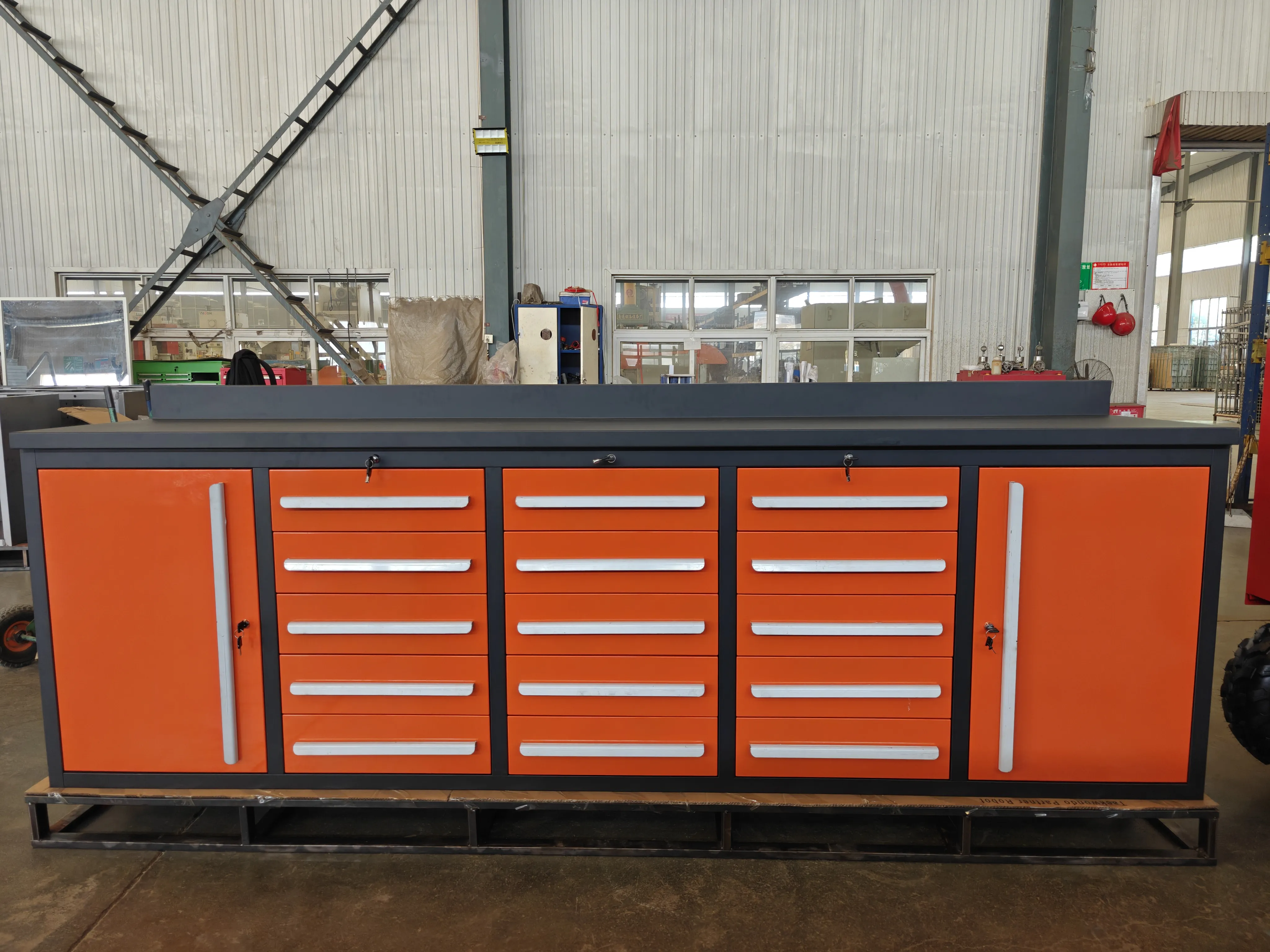 Ang tuktok ng gabinete ay maaaring magamit ng berdeng guhit na goma, pag -edit, pagguhit ng board, mailipat na drawer ng back, square hole hanging board o louver na nakabitin na board upang mapalawak ang pag -andar ng tool cabinet.