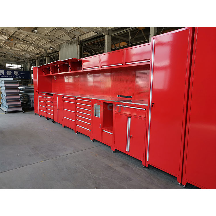Ang CYJY ay isang kilalang enterprise na nag-specialize sa disenyo, produksyon, pagbebenta at serbisyo pagkatapos ng benta ng pulang garage tool cabinet. Pagod ka na ba sa paghalungkat sa isang magulong garahe upang mahanap ang tamang tool? Huwag nang tumingin pa sa Red Tool Garage Cabinet, isang kailangang-kailangan na solusyon sa pag-iimbak para sa sinumang mahilig sa garahe. Sa makulay nitong pulang kulay at praktikal na disenyo, nag-aalok ang tool cabinet na ito hindi lamang ng functionality ngunit nagdaragdag din ng kakaibang istilo sa iyong workspace.